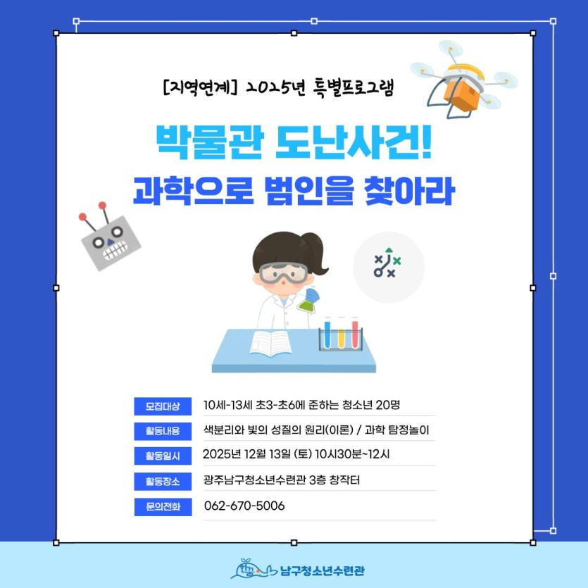 <[지역연계] 특별프로그램 '박물관 도난사건! 과학으로 범인을 찾아라' 참여자 모집>